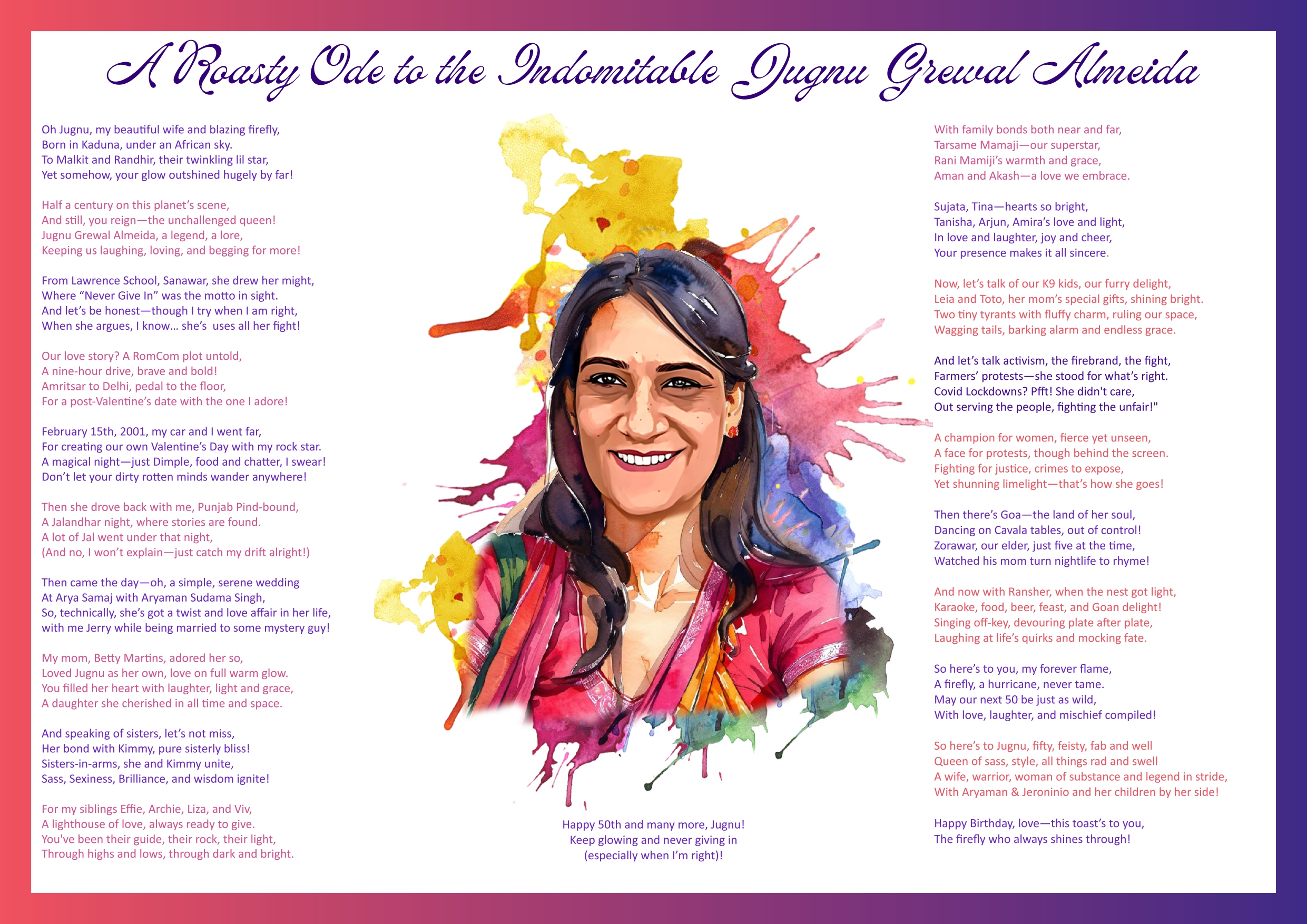 But wait—there’s poetic justice too! Jerry pens exclusive Odes, Poems, and Ballads, tailor-made for your occasion, every word capturing the spirit and sparkle of the moment. Want to frame the memory? Each creation is paired with an exclusive portrait by the renowned Dr. Harshaa, whose art makes every story pop (more than your favourite toast at a bubbly brunch). Whether you want to celebrate, reminisce, or just give your guests an ab-workout without going to the gym, Jerry makes every toast, roast, and ode a talking point long after the event. With Jerry, you’re not just getting a speaker. You’re getting an experience—where laughter is contagious, stories are unforgettable, and even the afterlife would RSVP “yes” if it could.